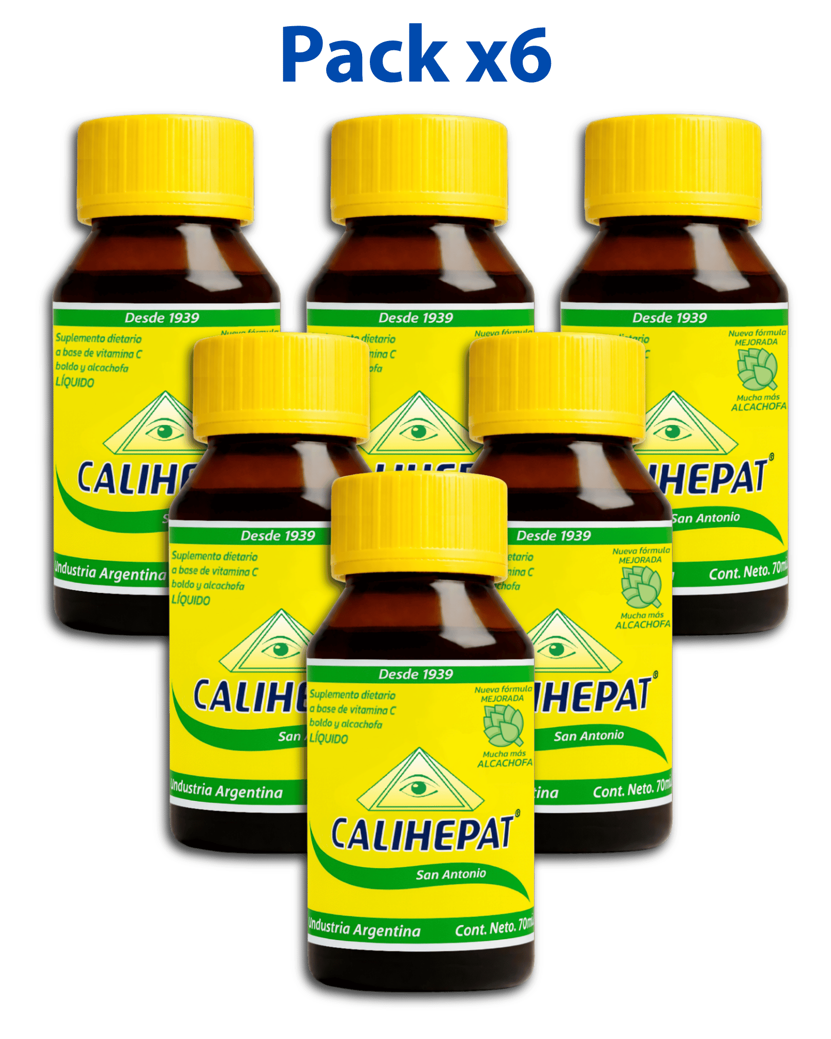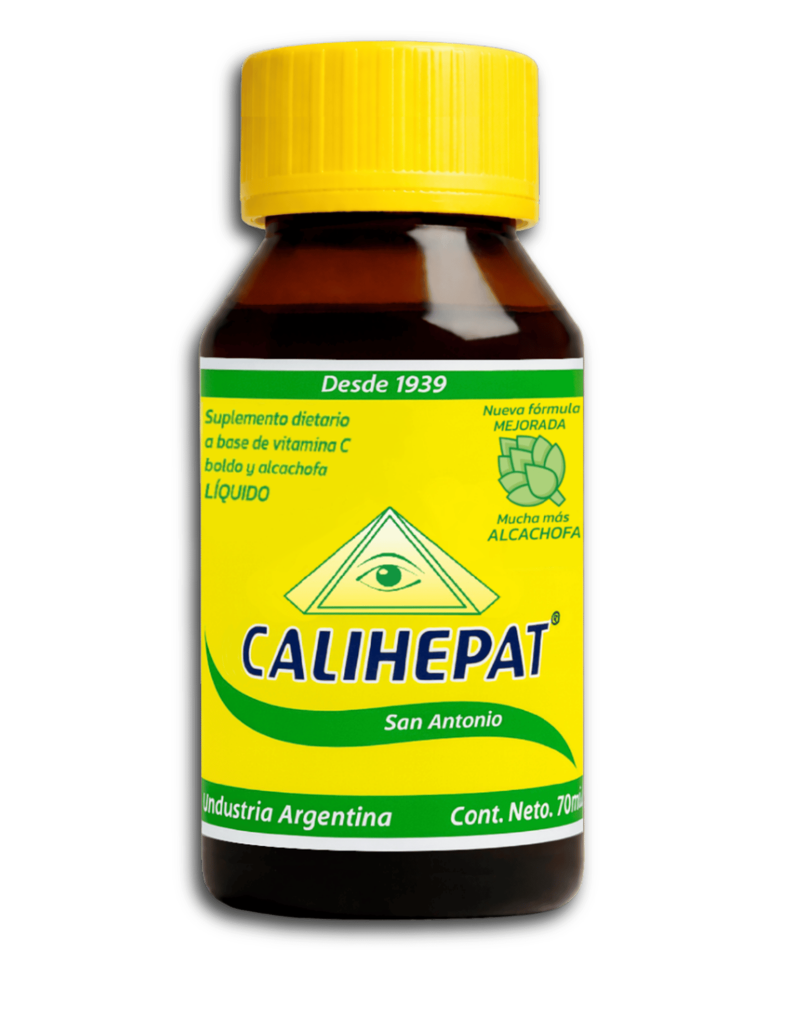 CALIHEPAT Bebida de San Antonio es un suplemento dietario diseñado para quienes buscan optimizar su funcionamiento digestivo. Formulado a base de extractos herbales como la alcachofa, el boldo y la carqueja, cada dosis de 5 ml te ofrece un apoyo nutricional efectivo, complementado con vitamina C.