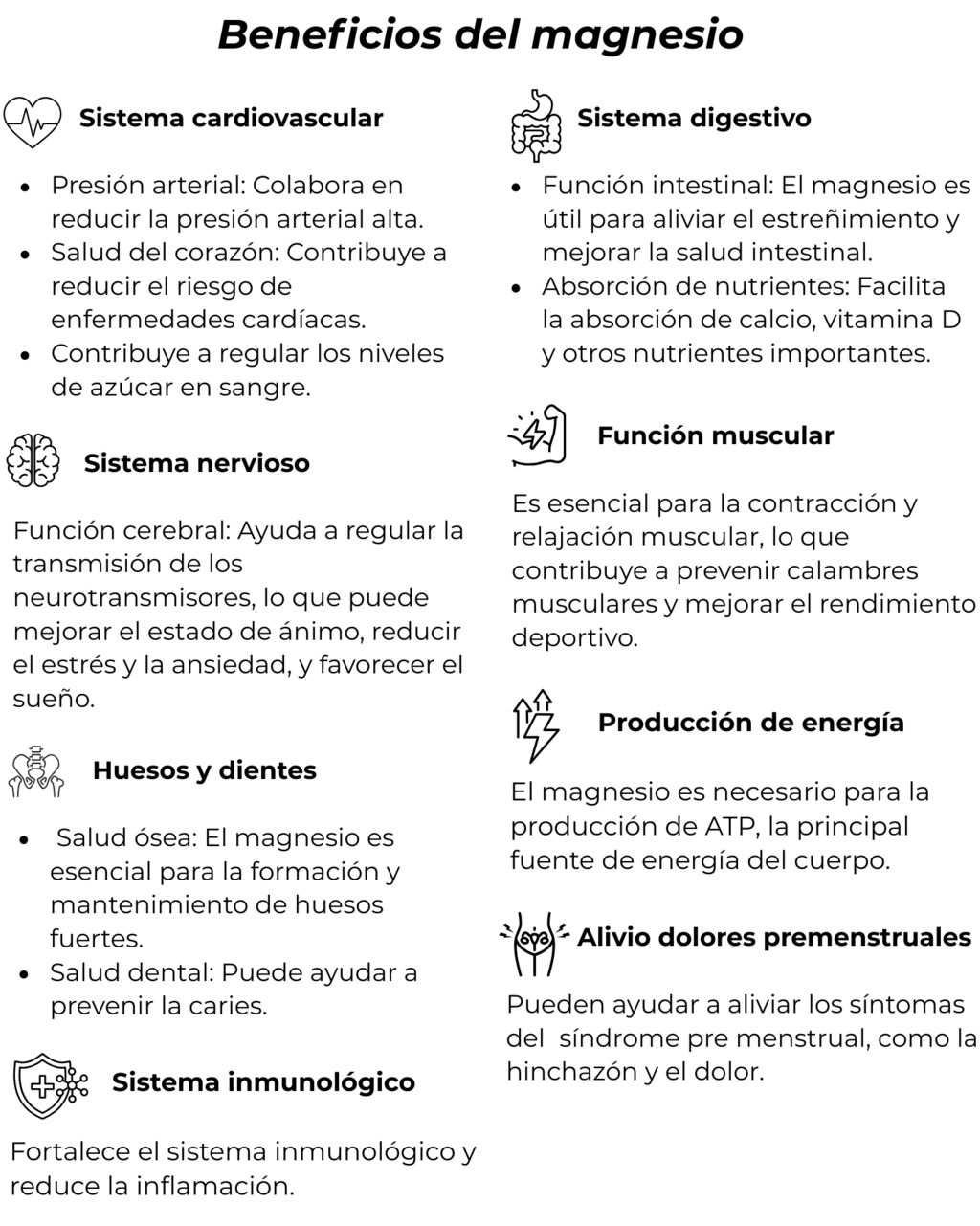 2 cápsulas aportan 180 mg de magnesio (70 % IDR).